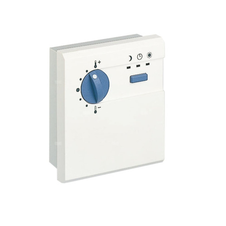 Moduł pomieszczeniowy z wbudowanym czujnikiem temperatury. Umożliwia zmianę trybu pracy oraz korektę nastawy temperatury. Komunikacja z regulatorem poprzez magistralę bus