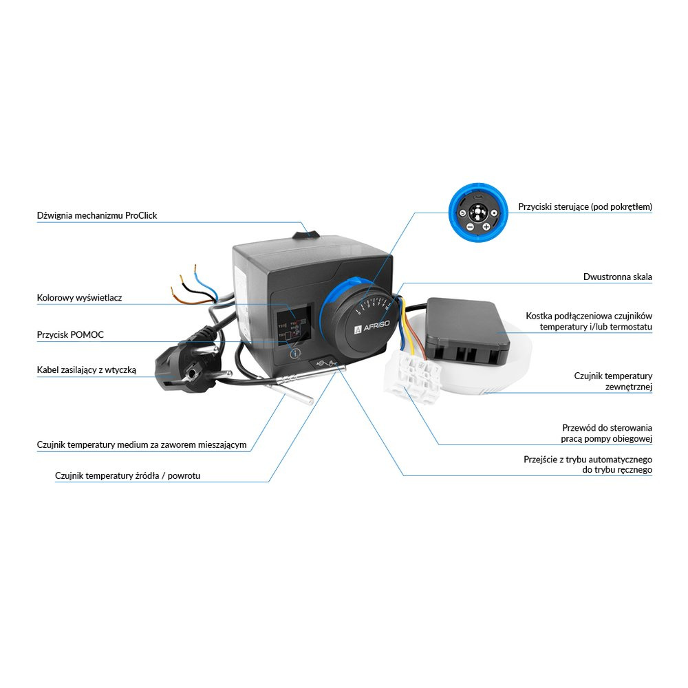 Stosowany w instalacjach grzewczych i chłodzących. Montowany bezpośrednio na 3‑ i 4‑drogowych zaworach mieszających. Reguluje