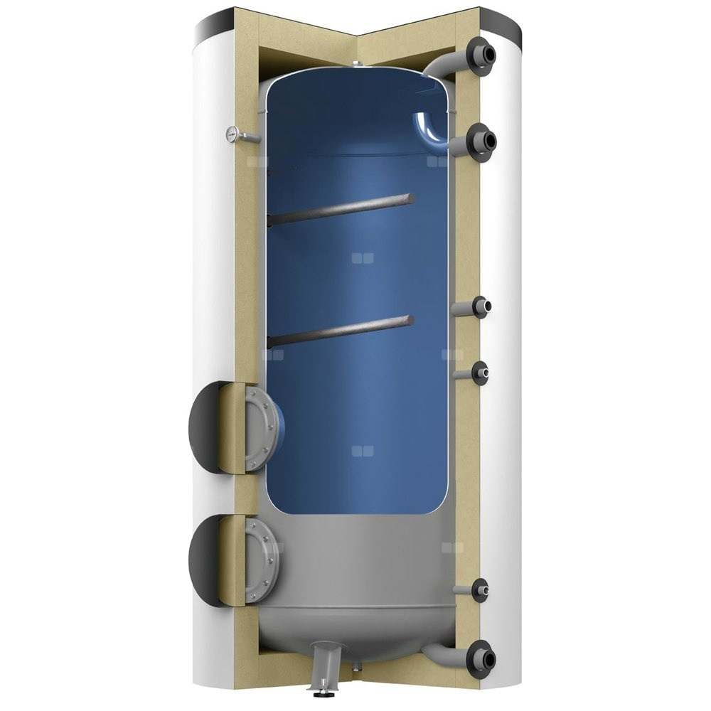Zasobnik ze stali S235JR+AR, zgodny z normą PN-EN 12897 i Dyrektywą o urządzeniach ciśnieniowych 2014/68/UE. Powłoka emaliowana spełniająca wymogi higieniczne dla wody przeznaczonej do spożycia zgodna z normą DIN 4753 T3.Podgrzewacz wody użytkowej do 500 litrów z niezdejmowaną, wydajną izolacją, klasa palności B2 wg DIN 4102-1, podgrzewacz wody użytkowej > od 500 do 1000 litrów z izolacją 100 mm, podgrzewacz wody użytkowej > powyżej 1000 litrów ze zdejmowaną izolacją z włókien poliestrowych 120 mm, klasa palności B2 wg DIN 4102-1.Zasobniki i podgrzewacze o pojemności do 2000 litrów są zaizolowane fabrycznie. Zasobniki o pojemności od 3000 litrów są dostarczane bez izolacji, w pozycji leżącej. Izolację należy zamówić osobno.Zasobniki i podgrzewacze dostępne w klasie efektywności energetycznej C.Straty ciepła zostały zmierzone na stanowiskach kontrolnych certyfikowanych zewnętrznie.Długość towaru w centymetrach