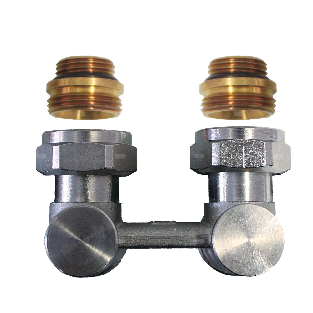 Moduł przyłączeniowy kątowy HERZ 3000 (3766) mosiądz (niklowanie) 1/2'' x 3/4'', rozstaw 50 mm do grzejników