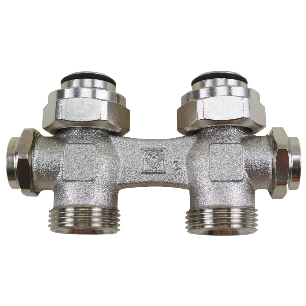 Moduł przyłączeniowy prosty HERZ 3000 (3466) mosiądz (niklowanie) 3/4'' x 3/4'', rozstaw 50 mm do grzejników