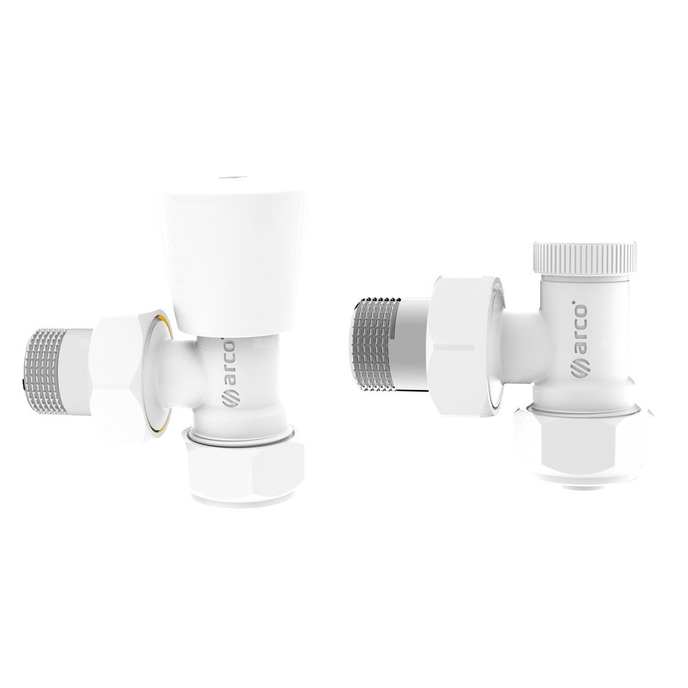 TEIDE PLUS Zestaw zaworów grzejnikowych kątowych (zasilający + powrotny), 1/2 x 16, do rur wielowarstwowych, biały