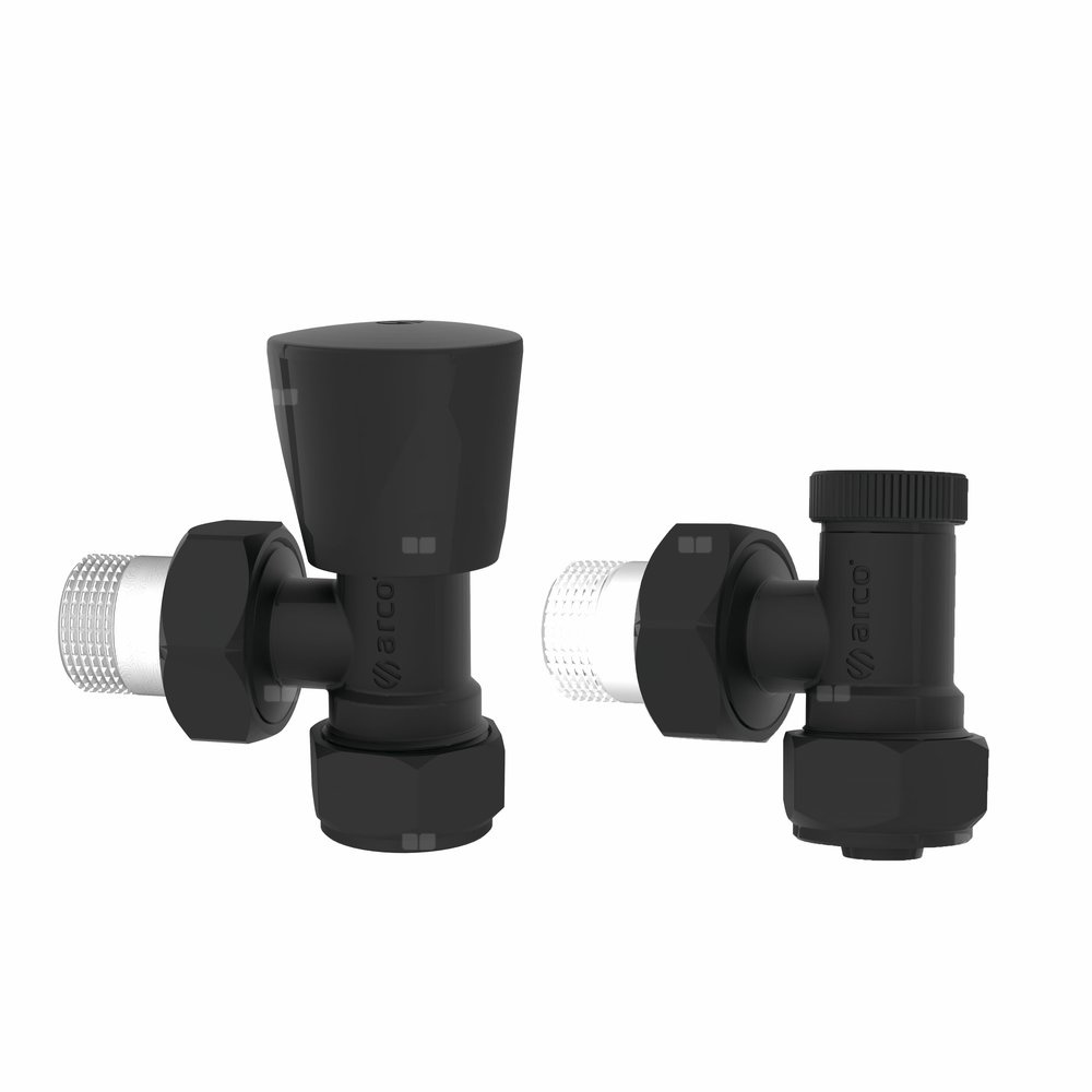 TEIDE PLUS Zestaw zaworów grzejnikowych kątowych (zasilający + powrotny), 1/2 x 16, do rur wielowarstwowych, czarny