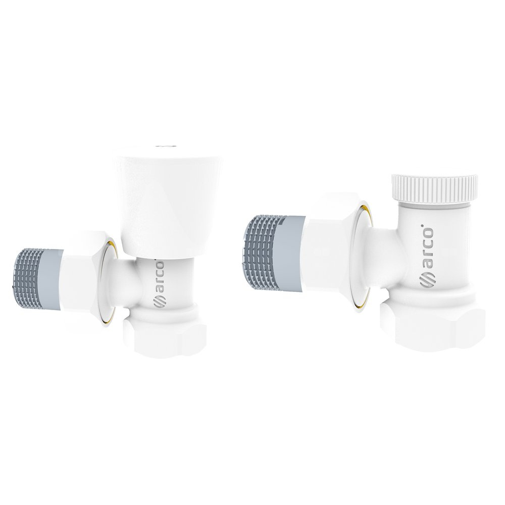 TEIDE PLUS Zestaw zaworów grzejnikowych kątowych (zasilający + powrotny), 1/2GZ x 1/2GW, biały