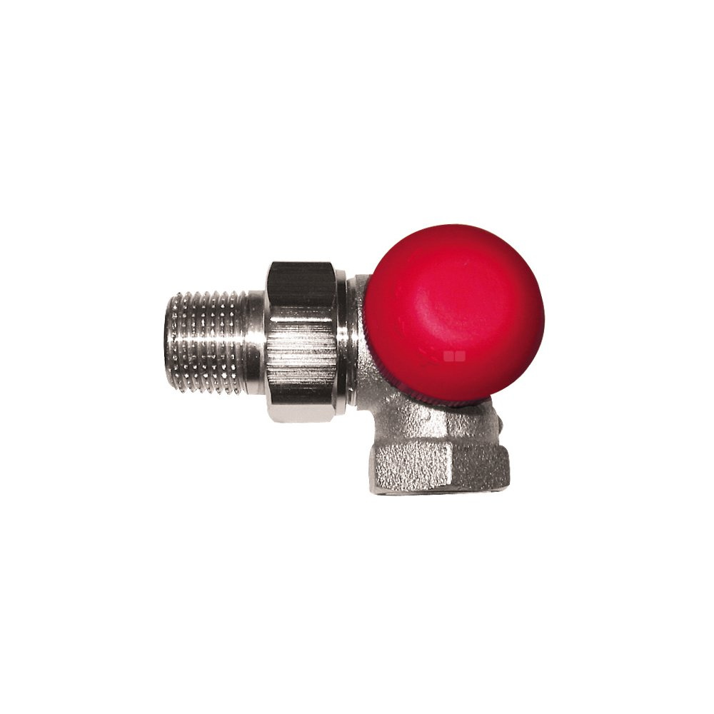 Zawór grzejnikowy termostatyczny HERZ TS-90-V 3-osiowy cd z nastawą wstępną, połączenie 1/2'' (niklowanie) czerwony