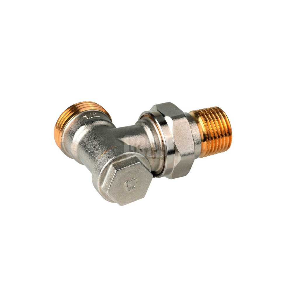 Zawór powrotny VERAFIX-E, kątowy, 1/2”, gwint zewnętrzny, ze złączką do grzejnika z uszczelnieniem metal-metal