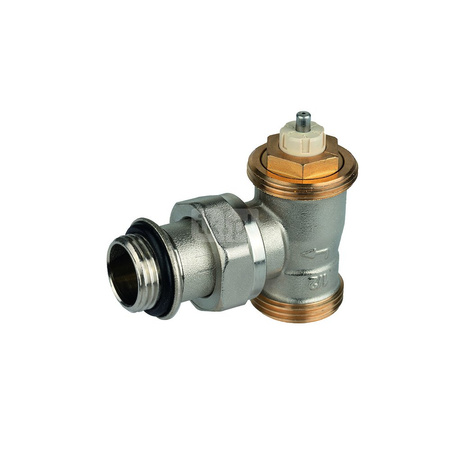 Zawór termostatyczny, kątowy, wkładka SX, DN15, gwint zewnętrzny 3/4", ze złączką do grzejnika z uszczelnieniem miękkim