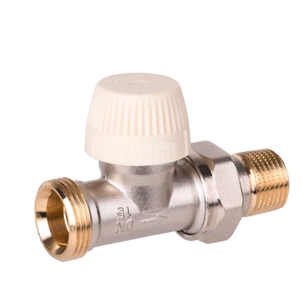 2. Zawór termostatyczny z wkładką SX, kątowy, przyłącze 1/2". Korpus z gwintami zewnętrznymi i złączką do grzejnika z uszczelnieniem metal-metal