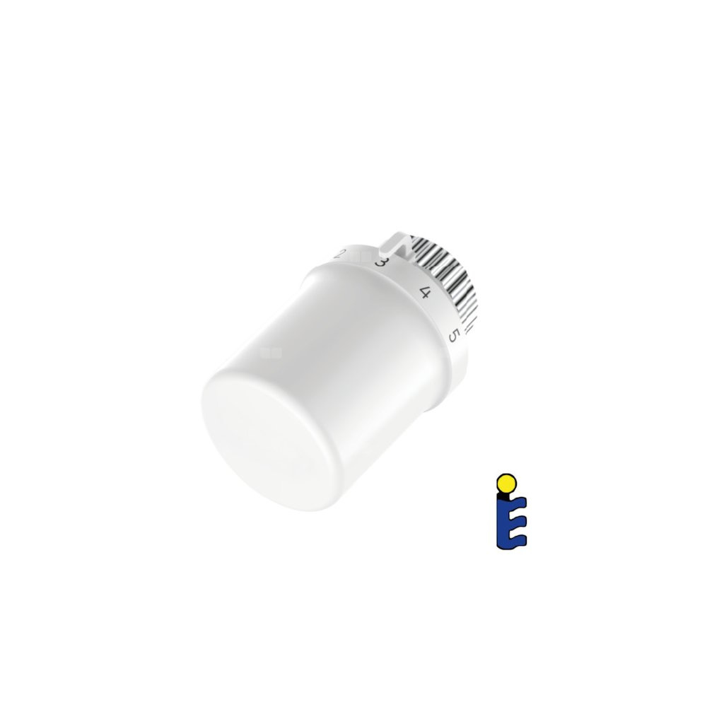 1. Kompaktowa głowica termostatyczna Thera-6 o gładkiej powierzchni i wysokiej efektywności energetycznej, przyłącze M30x1,5, zakres nastaw temperatur 6-28oC.