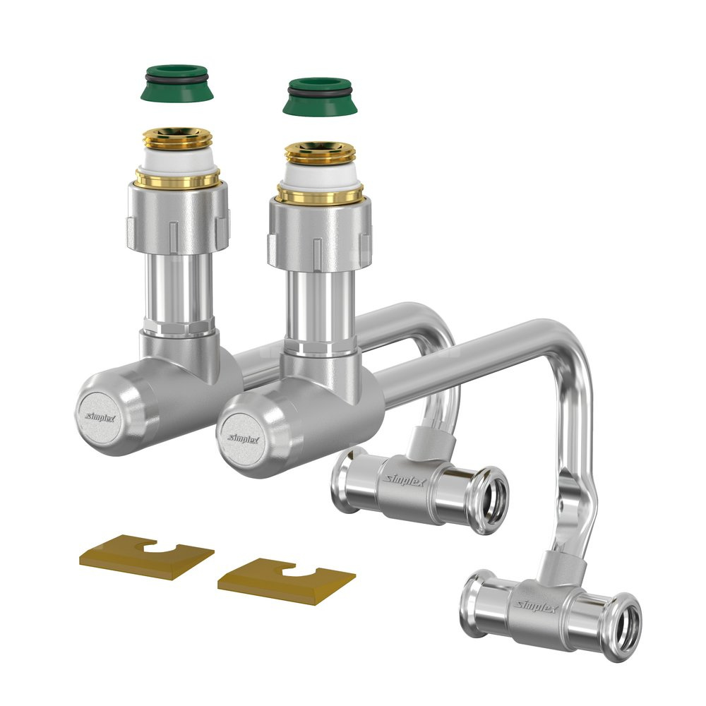 Zestaw przyłączeniowy grzejnikowy dwururowy FLAMCO MEIBES 3/4 cala zewnętrzne, rozstaw 50 mm, zawór kątowy (kąt prosty)