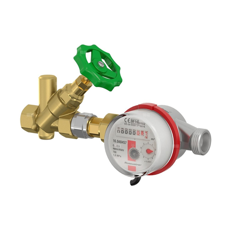 System składa się z zabezpieczenia przed podpiętrzeniem, licznika wody, zaworu kulowego oraz zabezpieczenia przed przepływem zwrotnym.