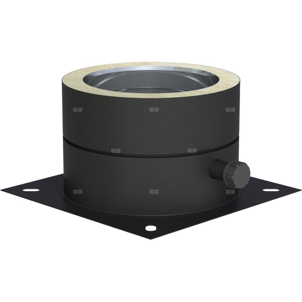 Płyta fundamentowa do montażu na cokole systemu izolowanego Jeremias DW-BLACK lakierowana na czarno, jest elementem bazowym instalacji kominowej, na którym montowane są kolejne elementy części pionowej układu kominowego.