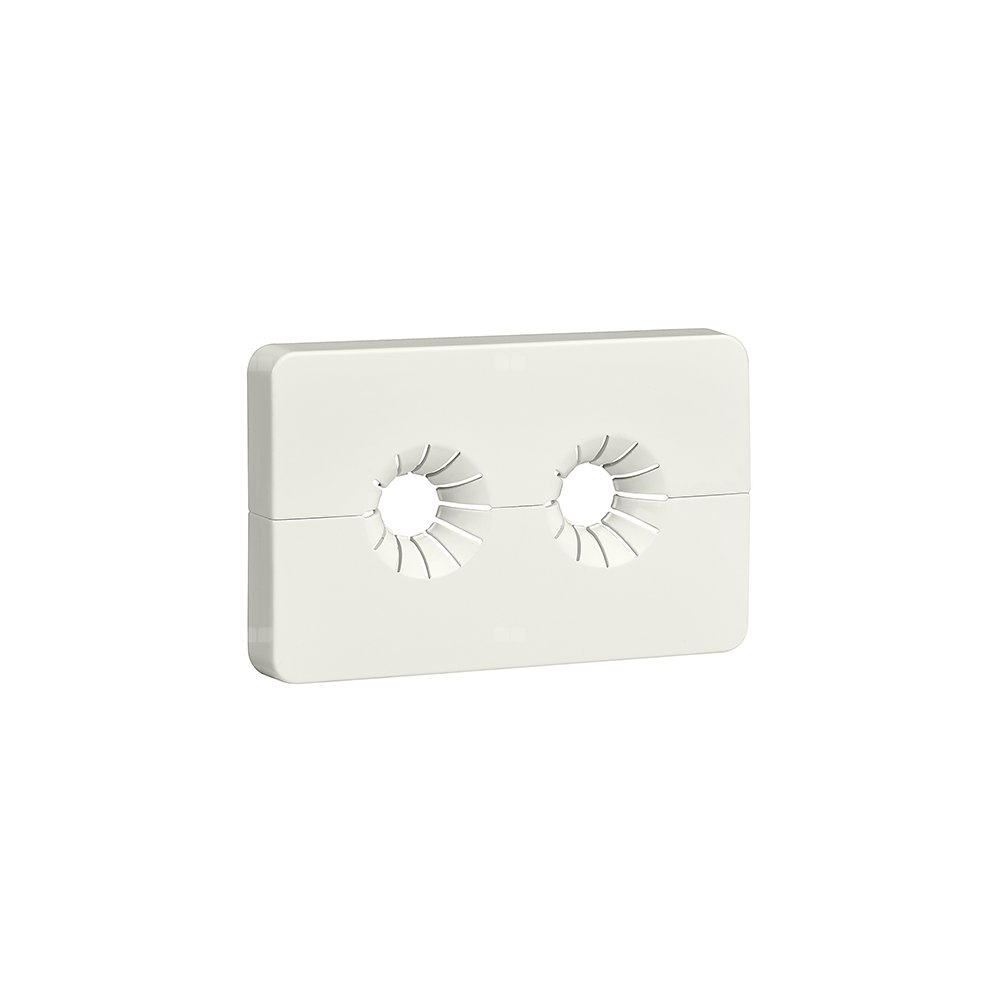 Pojedyncza rozeta maskująca Dla przewodów o średnicy zewnętrznej od 12 do 20 mm. Rozstaw przyłączy głównych: 40 mm. Wykończenie: biały RAL 9010.