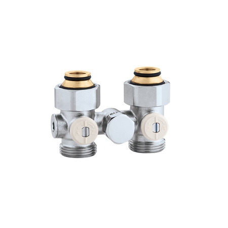 Podwójny zawór podłączeniowy do grzejników stalowych z wkładką termostatyczną. Wersja jednorurowa prosta - 3/4" GZ