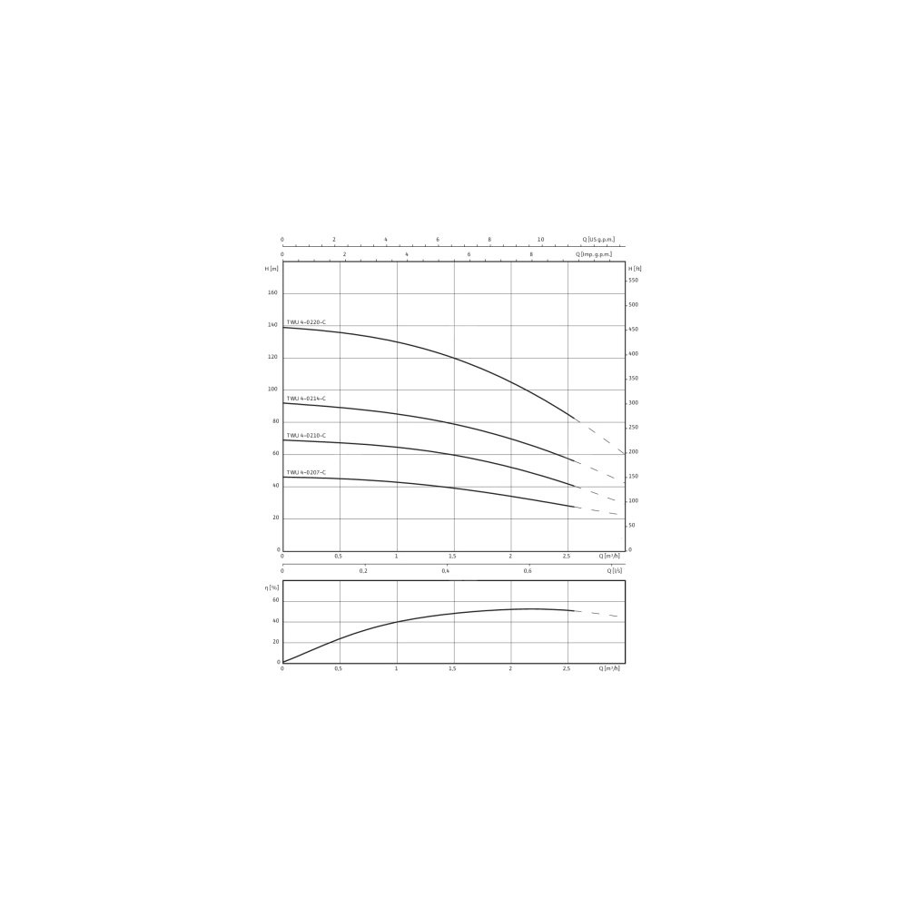 Całkowicie zanurzona, wielostopniowa pompa głębinowa z promieniowymi lub półosiowymi wirnikami o budowie segmentowej do montażu pionowego lub poziomego, z wbudowanym zabezpieczeniem przed przepływem zwrotnym. Odporny na korozję silnik prądu zmiennego lub indukcyjny trójfazowy do rozruchu bezpośredniego, napełniony mieszaniną wody i glikolu. Hermetycznie zalany silnik z uzwojeniem emaliowanym, impregnowany żywicą, z łożyskami samosmarującymi. Chłodzenie silnika odbywa się poprzez przetłaczane medium. Dlatego podczas pracy urządzenie musi być zawsze zanurzone. Przy montażu poziomym konieczny jest płaszcz chłodzący.