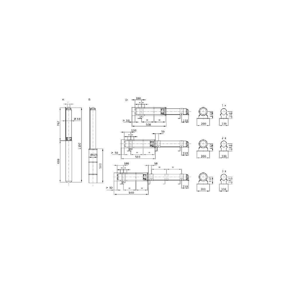 Całkowicie zanurzona, wielostopniowa pompa głębinowa z promieniowymi lub półosiowymi wirnikami o budowie segmentowej do montażu pionowego lub poziomego, z wbudowanym zabezpieczeniem przed przepływem zwrotnym. Odporny na korozję silnik prądu zmiennego lub indukcyjny trójfazowy do rozruchu bezpośredniego, napełniony mieszaniną wody i glikolu. Hermetycznie zalany silnik z uzwojeniem emaliowanym, impregnowany żywicą, z łożyskami samosmarującymi. Chłodzenie silnika odbywa się poprzez przetłaczane medium. Dlatego podczas pracy urządzenie musi być zawsze zanurzone. Przy montażu poziomym konieczny jest płaszcz chłodzący.