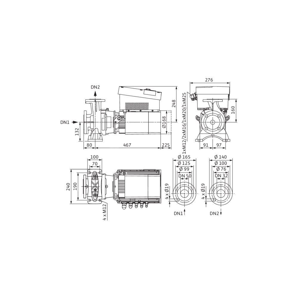 *Interfejsy analogowe 0-10 V, 2-10 V, 0-20 mA, 4-20 mA, zintegrowany system zarządzania pracą pomp podwójnych do zastosowania w kształtce rozgałęźnej, dwa przekaźniki sygnalizacji pracy i awarii z możliwością konfiguracji, konfigurowana reakcja w przypadku usterki dostosowana do instalacji grzewczych i klimatyzacyjnych, blokada dostępu na pompie, wbudowane pełne zabezpieczenie silnika (czujnik termistorowy) z wyzwalaczem elektronicznym, standardowe otwory odpływowe kondensatu w korpusie silnika (w stanie fabrycznym zamknięte), złącze na podczerwień do bezprzewodowej komunikacji z urządzeniem kontrolno-serwisowym Wilo-IR-Moduł i Wilo-IR-Stick, gniazdo do IF-Modułów Wilo Modbus, BACnet, CAN, PLR, LON do podłączenia do automatyki budynku