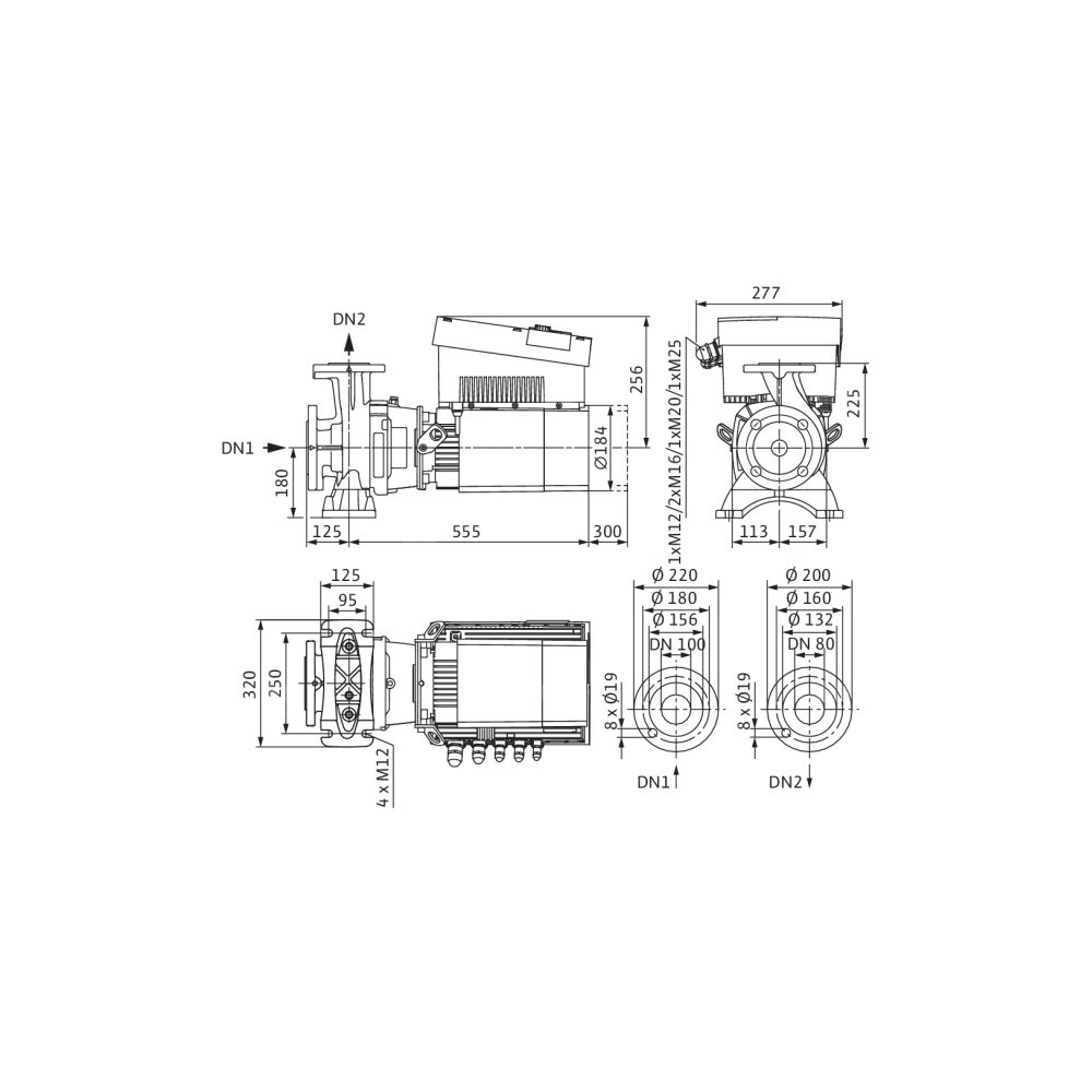 Pompa obiegowa blokowa Wilo-Stratos GIGA B 80/1-18/3,2 o najwyższej sprawności z silnikiem EC i elektronicznie regulowanym dopasowaniem wydajności, o konstrukcji dławnicowej. Jednostopniowa, niskociśnieniowa pompa wirowa z przyłączem kołnierzowym i uszcze