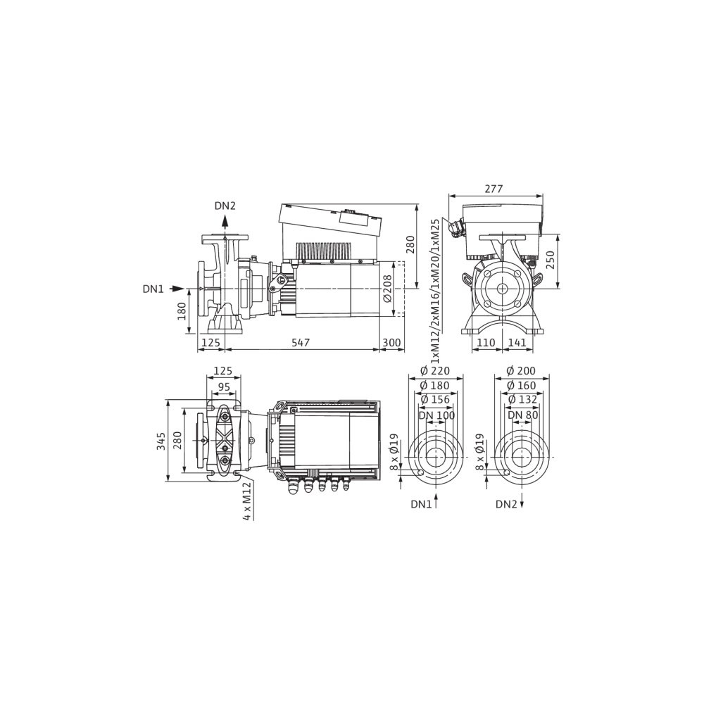 Pompa obiegowa blokowa Wilo-Stratos GIGA B 80/1-32/5,6-R1 o najwyższej sprawności z silnikiem EC i elektronicznie regulowanym dopasowaniem wydajności, o konstrukcji dławnicowej. Jednostopniowa, niskociśnieniowa pompa wirowa z przyłączem kołnierzowym i usz
