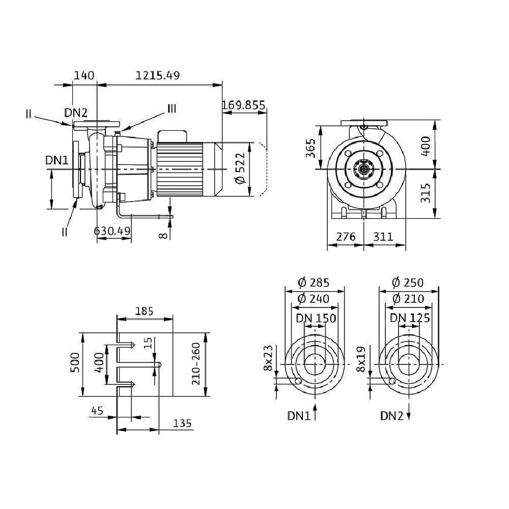 Odległość między osiami przyłącza ssawnego/tłocznego [mm]