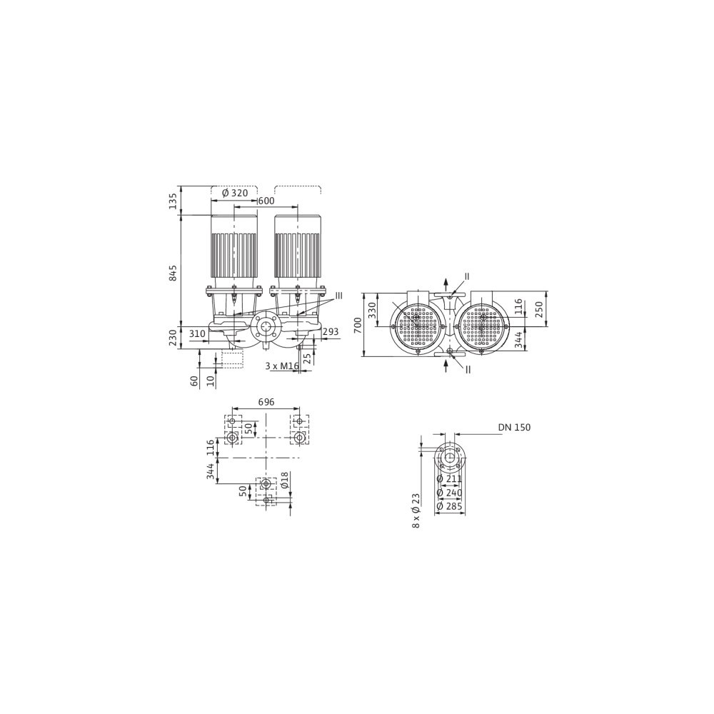 Pompa obiegowa WILO CronoTwin-DL 150/260-15/4-S1 typu in-line z silnikiem znormalizowanym 50 Hz, moc silnika 15kW 29.8 A 1450 obr/min, wlot Kołnierz DN 150