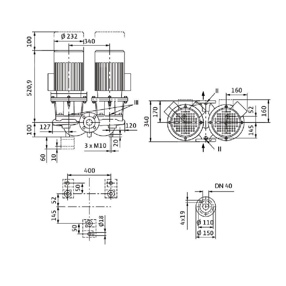 Pompa obiegowa WILO CronoTwin-DL 40/160-4/2-IE3 typu in-line z silnikiem znormalizowanym 50 Hz, moc silnika 4kW 7.75 A 2900 obr/min, wlot Kołnierz DN 40
