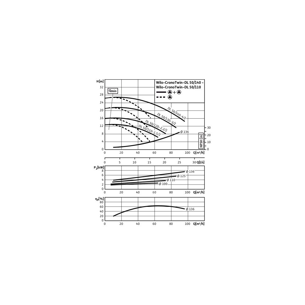 Pompa obiegowa WILO CronoTwin-DL 50/140-3/2-IE3 typu in-line z silnikiem znormalizowanym 50 Hz, moc silnika 3kW 6.15 A 2900 obr/min, wlot Kołnierz DN 50