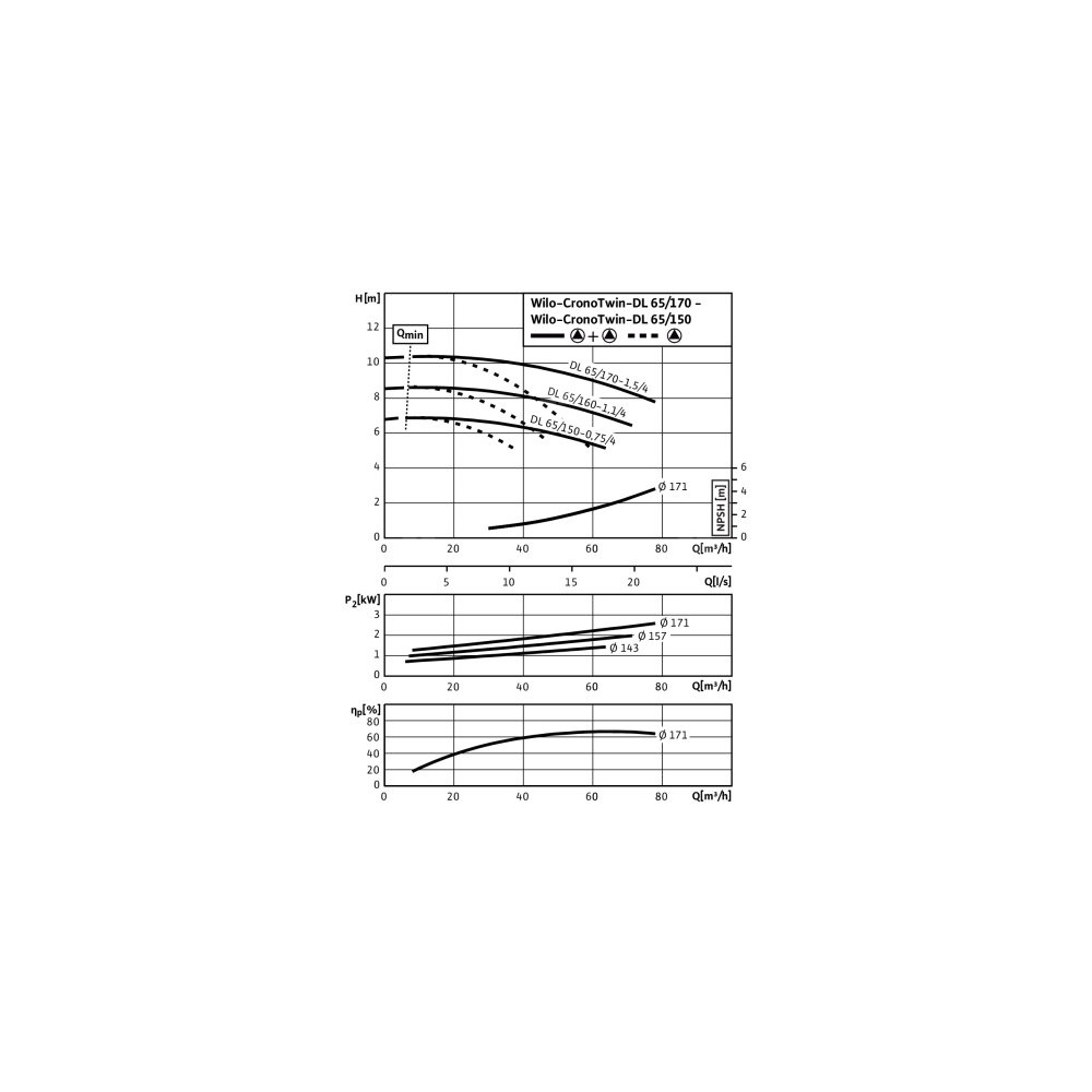 Pompa obiegowa WILO CronoTwin-DL 65/170-1,5/4-IE3 typu in-line z silnikiem znormalizowanym 50 Hz, moc silnika 1.5kW 3.6 A 1450 obr/min, wlot Kołnierz DN 65