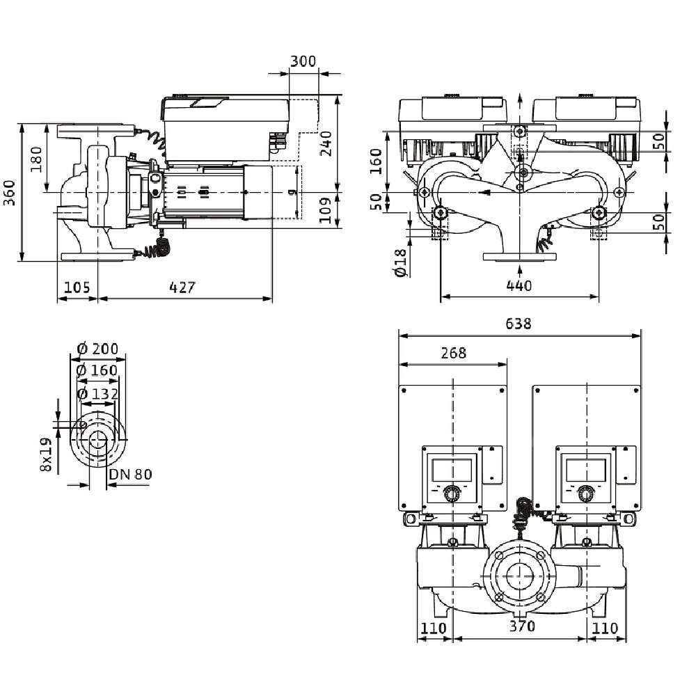 Pompa obiegowa WILO Stratos GIGA 2.0-D 80/1-20/2,2 typu in-line z silnikiem znormalizowanym 50/60 Hz, moc silnika 2.2kW 3.8 A 2840 obr/min, wlot Kołnierz DN 80