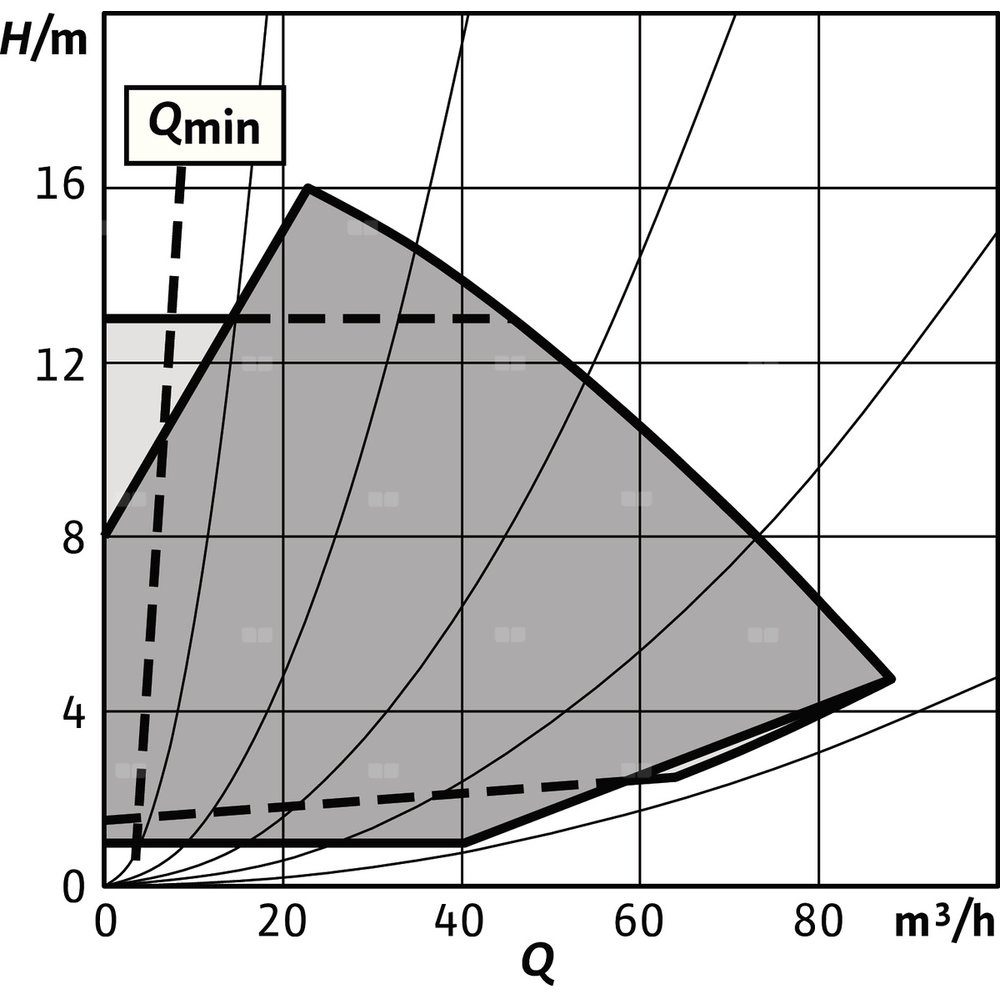 - Uszczelnienie mechaniczne do tłoczenia wody o temperaturze do Tmax. = +140 °C. Do T ≤ +40 °C dopuszczalna jest domieszka glikolu od 20 % do 40 % objętości. W przypadku mieszanin woda-glikol z zawartością glikolu > 40 % maks. do 50 % objętości i o temperaturze przetłaczanej cieczy od > +40 °C maks. do +120 °C lub przetłaczanych mediów innych niż woda należy zastosować alternatywne uszczelnienie mechaniczne.
