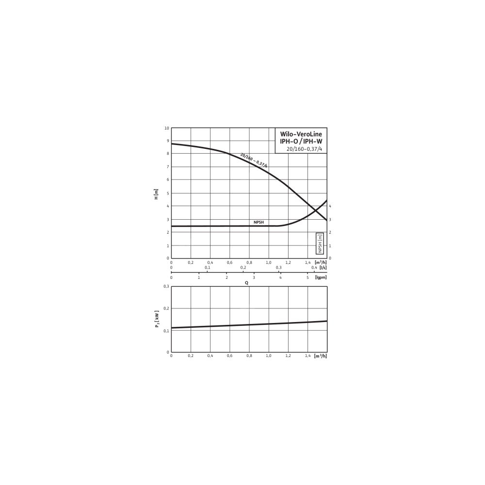 Pompa obiegowa WILO VeroLine-IPH -O 20/160-0,37/4 typu in-line z silnikiem znormalizowanym 50 Hz, moc silnika 0.37kW 1.12 A 1425 obr/min, wlot Kołnierz