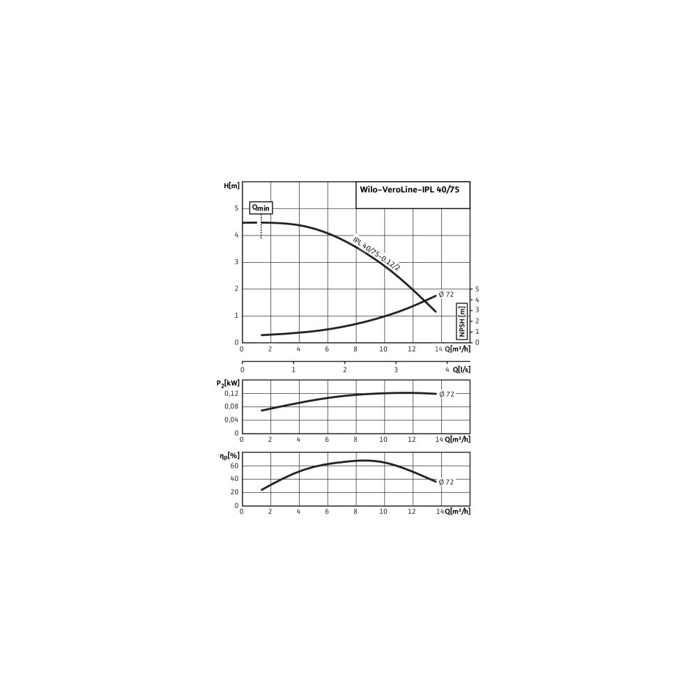 Pompa obiegowa WILO VeroLine-IPL 40/75-0,12/2 typu in-line z silnikiem znormalizowanym 50 Hz, moc silnika 0.12kW 0.33 A 2780 obr/min, wlot Kołnierz DN 40
