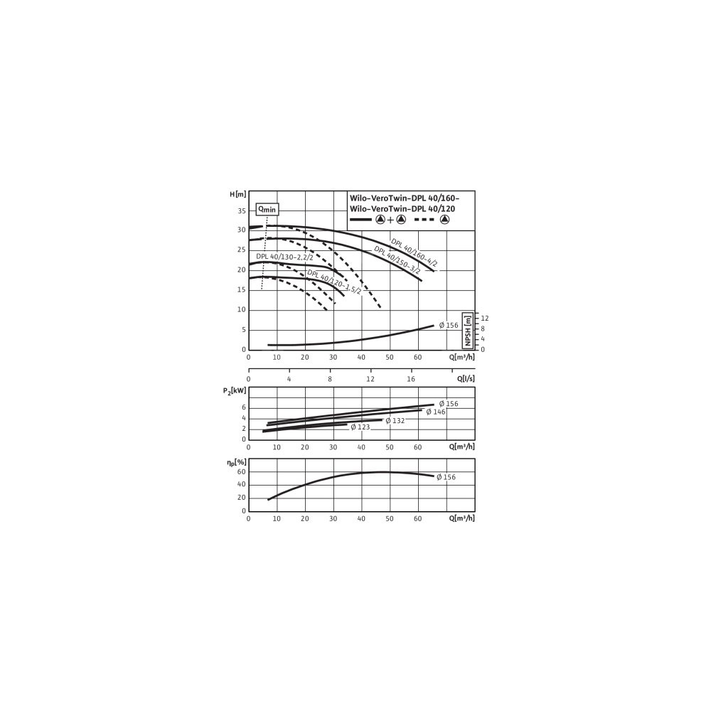 Pompa obiegowa WILO VeroTwin-DPL 40/150-3/2-IE3 typu in-line z silnikiem znormalizowanym 50 Hz, moc silnika 3kW 6.15 A 2900 obr/min, wlot Kołnierz DN 40