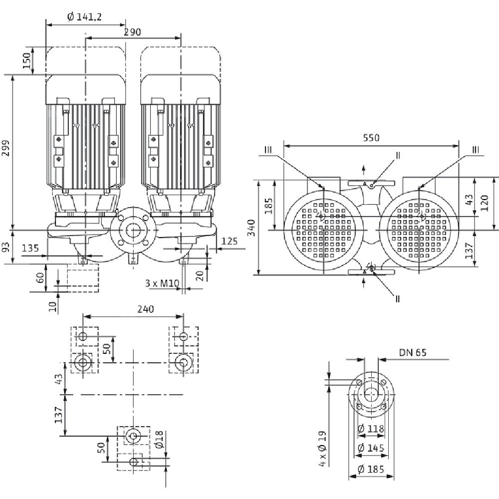 Pompa obiegowa WILO VeroTwin-DPL 65/110-0,25/4 typu in-line z silnikiem znormalizowanym 50 Hz, moc silnika 0.25kW 0.69 A 1450 obr/min, wlot Kołnierz DN 65