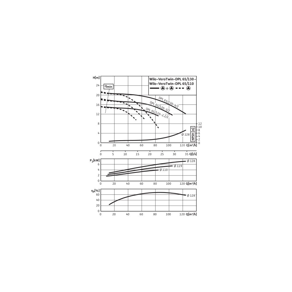 Pompa obiegowa WILO VeroTwin-DPL 65/130-4/2-IE3 typu in-line z silnikiem znormalizowanym 50 Hz, moc silnika 4kW 7.75 A 2900 obr/min, wlot Kołnierz DN 65