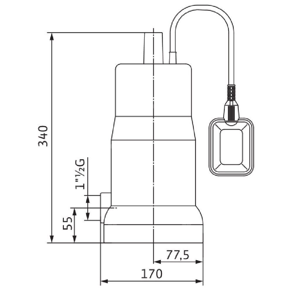 Wastewater pump with vortex impeller and vertical threaded connection (hose connection, enclosed). Pump housing and impeller made of composite material. 1~ motor with integrated operating capacitor, self-switching thermal motor monitoring, and basic sealing with a rotary shaft seal. Motor housing made of steel. Connection cable with float switch and fitted plug (CEE 7/7).