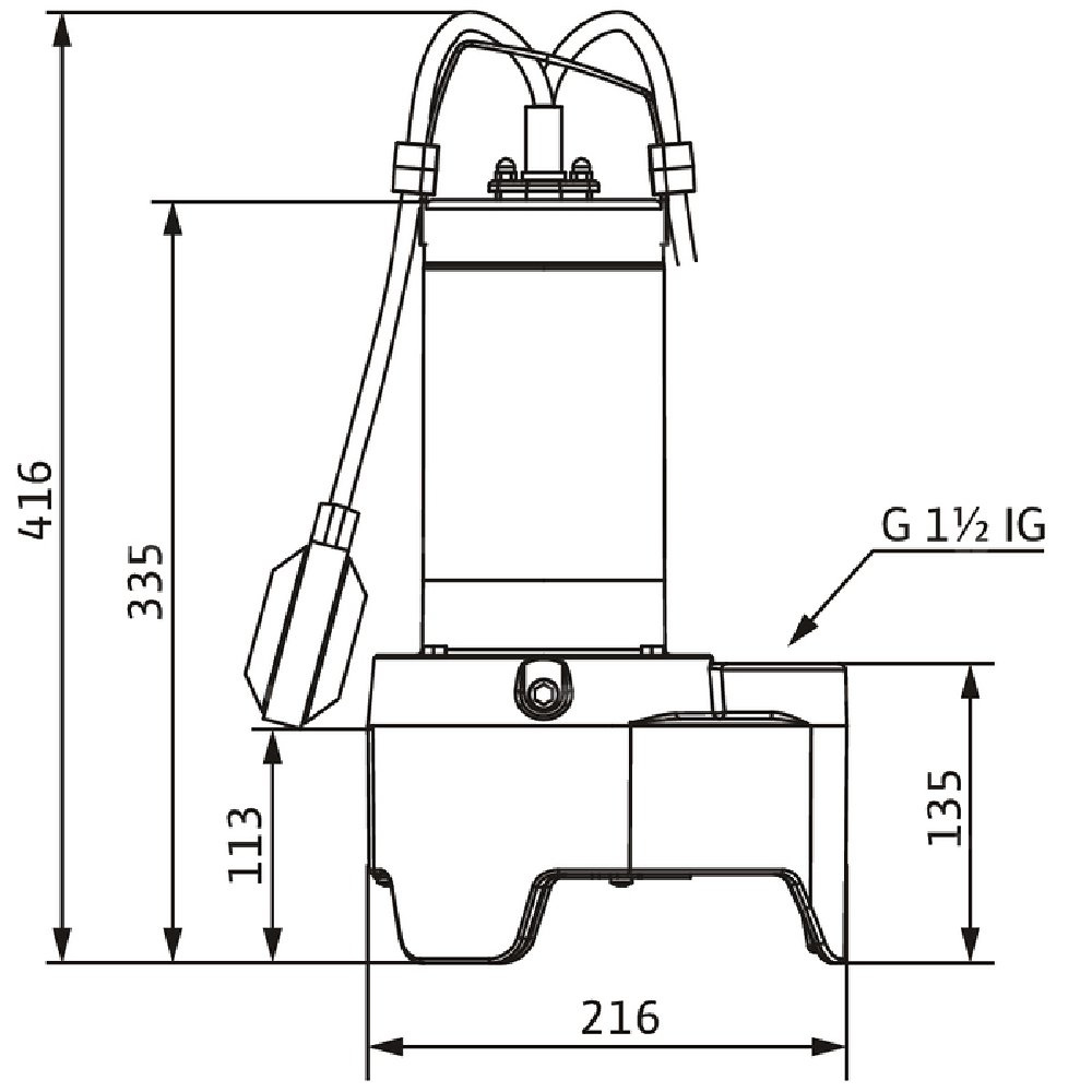 Całkowicie zanurzona pompa zatapialna do ścieków do stacjonarnego i przenośnego ustawienia mokrego, do tłoczenia ścieków bez fekaliów i wody zanieczyszczonej. Korpus hydrauliczny z żeliwa szarego, wirnik z tworzywa sztucznego, korpus silnika ze stali nierdzewnej. Hydraulika z pionowym gwintowanym przyłączem tłocznym i wirnikiem o swobodnym przepływie. Chłodzony powierzchniowo silnik prądu zmiennego ze zintegrowanym kondensatorem roboczym i automatyczną termiczną kontrolą silnika. Kabel zasilający z zamontowaną wtyczką z uziemieniem. Do uszczelnienia po stronie medium służy uszczelnienie mechaniczne, natomiast po stronie silnika pierścień uszczelniający wału. Wszystkie urządzenia bez certyfikatu Ex.