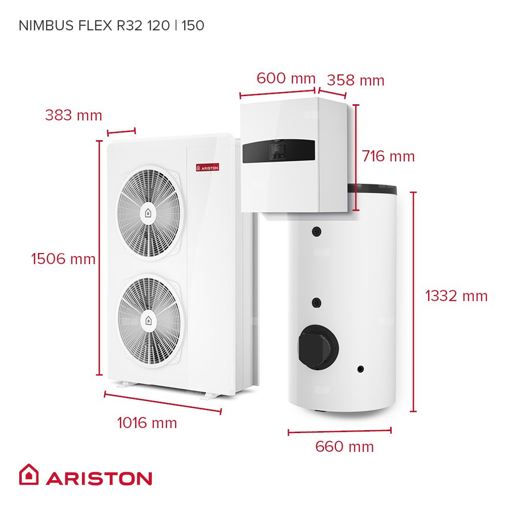 Pakiet - Pompa ciepła powietrzna powietrze-woda monoblok ARISTON NIMBUS FLEX M NET R32 11 kW 400 V + Moduł naścienny Sensys HD z łącznością Wi-FI + Zasobnik buforowy 200 l