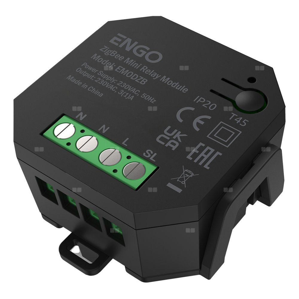 Zasilanie: 230V AC 50Hz. Maks. obciążenie: 3(1) A. Komunikacja: ZigBee 3.0 2,4GHz. Wyjście sterujące: 230V AC. Wymiary [mm]: 40 x 40 x 20.