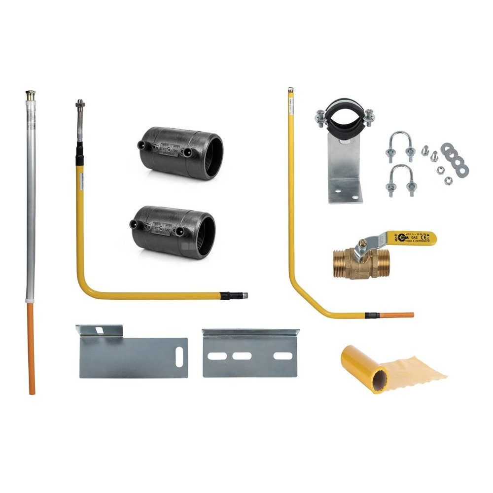akcesoria (wsporniki, taśma ostrzegawcza, kurek sferyczny).