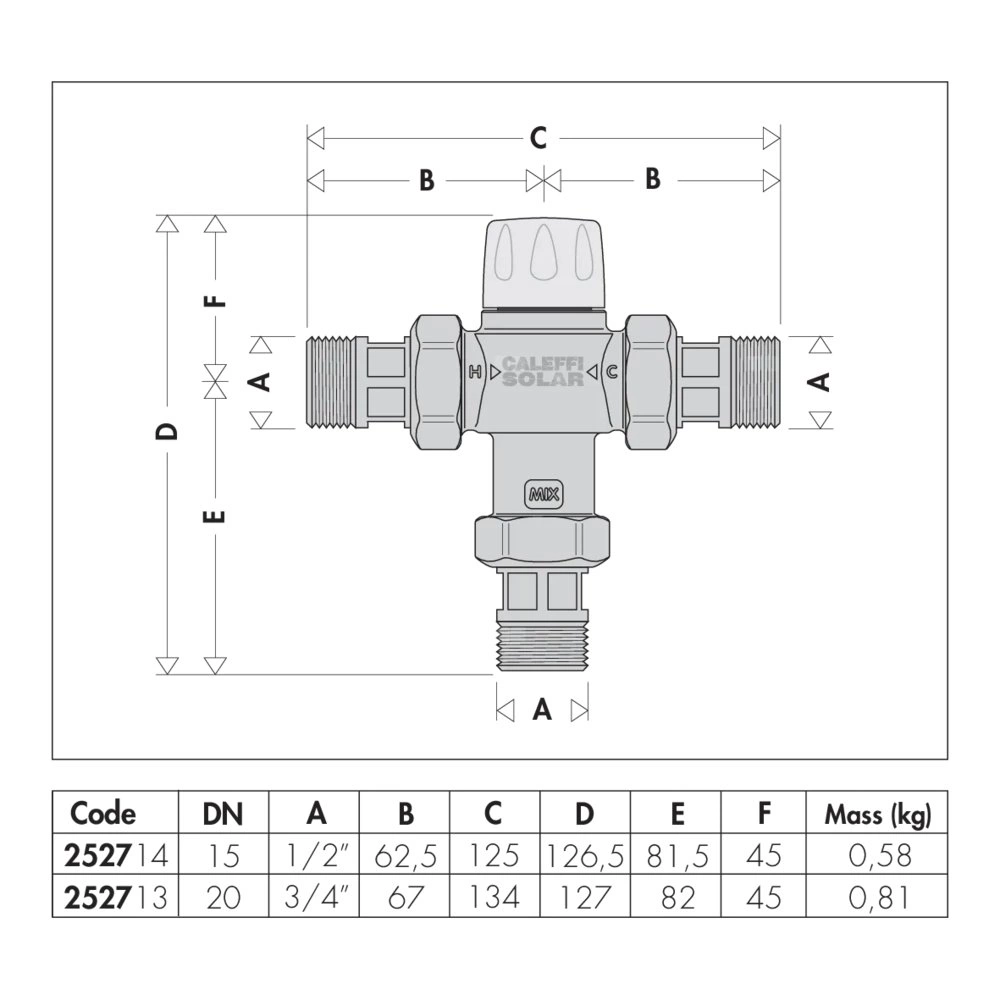 Regulowany termostatyczny antyoparzeniowy zawór mieszający z zaworami zwrotnymi i filtrami do instalacji solarnych Odporność ogniowa (DIN 4102): klasa B2 Wysoka wydajność cieplna urządzenia z funkcją ochrony antyoparzeniowej. Przyłącze: G 1/2" A (ISO 228-1) GZ, złączka. Maksymalne ciśnienie pracy: 10 bar. Zakres temperatury medium: 0–100 °C. Zakres regulacji temperatury: 35–55 °C. Kv: 1,5 m³/h. Materiał: stop mosiądzu odporny na odcynkowanie.
