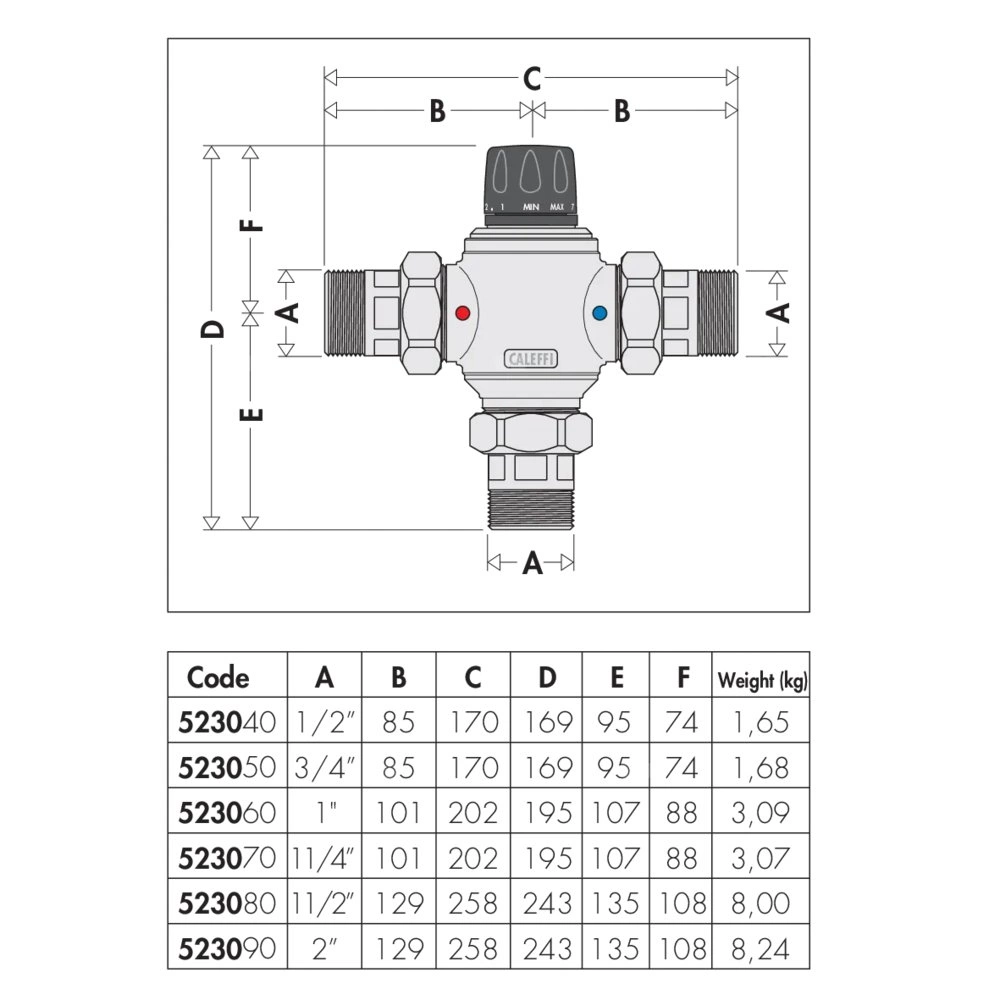 Regulowany termostatyczny zawór mieszający z wymiennym wkładem do systemów scentralizowanych Przyłącze: G 3/4" A (ISO 228-1) GZ. Maksymalne ciśnienie pracy: 14 bar. Zakres temperatury medium: 2–85 °C. Zakres regulacji temperatury: 30–65 °C. Kv: 4,5 m³/h. Materiał: mosiądz.