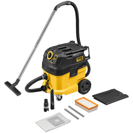 Wysokowydajny, elektryczny odkurzacz na sucho i mokro z automatycznym oczyszczaniem filtra. Dla użytku w rzemiośle i przemyśle. Odkurzanie pyłu, brudu i cieczy. Idealny do odpylania podczas bruzdowania, cięcia, wiercenia, wiercenia rdzeniowego i szlifowania. Certyfikowany jako odkurzacz i odpylacz do zbierania pyłów groźnych dla zdrowia. Idealny do zasysania szlamu powstającego przy wierceniu rdzeniowym.