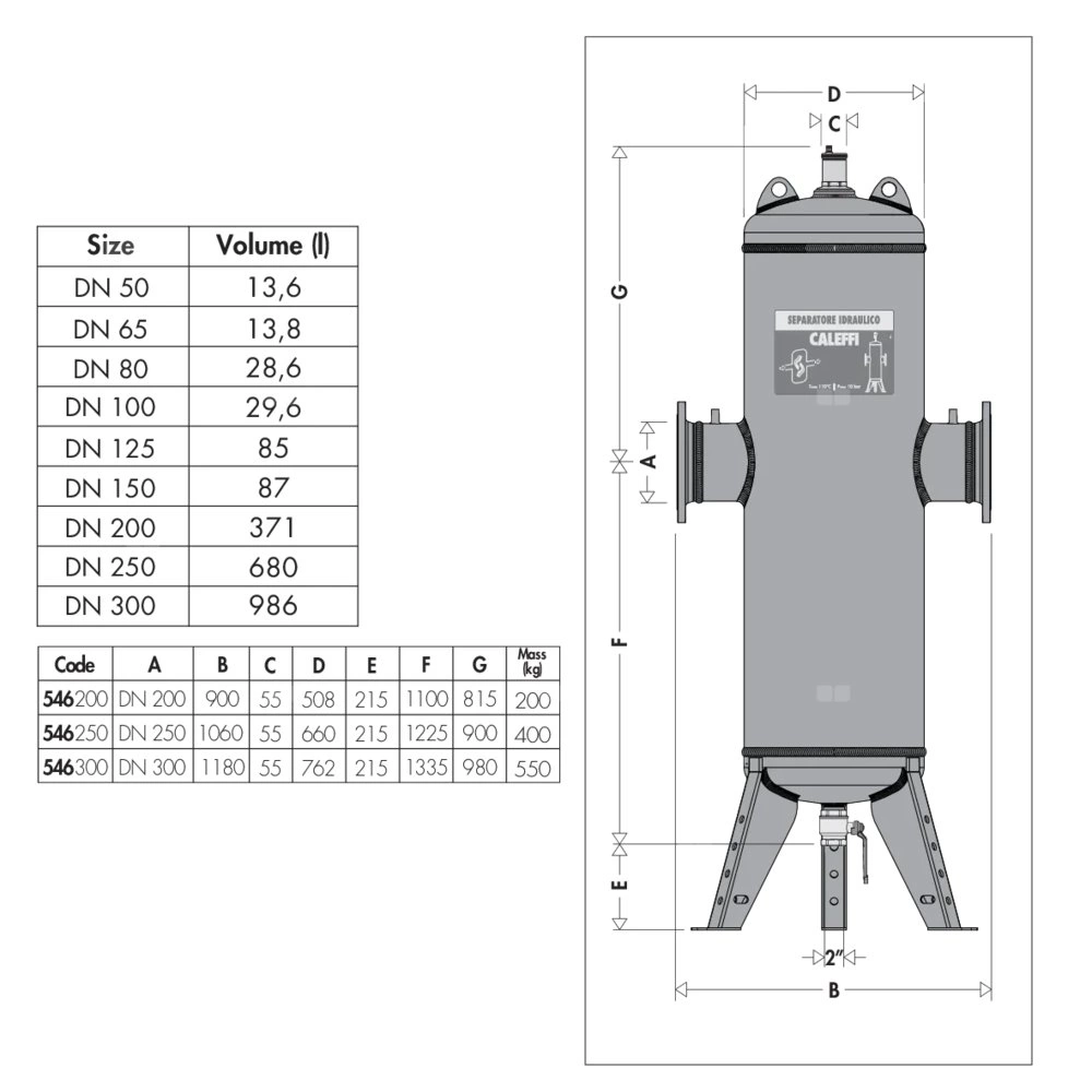 Separator powietrza - zanieczyszczeń. Współpraca z przeciwkołnierzem EN 1092-1 Przyłącze czujnika temperatury: 1/2″ GW. Wielkość separowanych cząstek do 5 µm. Przyłącze: DN 300 (EN 1092-1) PN 10. Maksymalne ciśnienie pracy: 10 bar. Maksymalne ciśnienie upustowe: 10 bar. Zakres temperatury medium: 0–110 °C. Wykończenie: lakierowane. Materiał: stal.