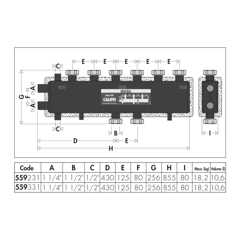 Przyłącza wyjściowe obiegów wtórnych 1 1/2" z nakrętką: trzy górne i jedno dolne (lub odwrotnie).