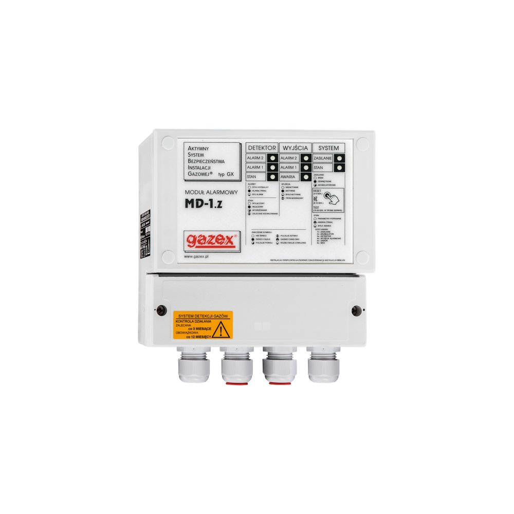 Pomiarowe moduły alarmowe typu MDP-4(8,16) są przeznaczone do kontroli i zasilania detektorów gazów typu DEX/F, DEX/P, DEX/A oraz DG/F, DG.EN, DG/P produkowanych przez GAZEX, do stosowania w Dwuprogowym (lub Pomiarowym) Systemie Detekcji Gazów lub w Aktywnym Systemie Bezpieczeństwa Instalacji Gazowej GX.