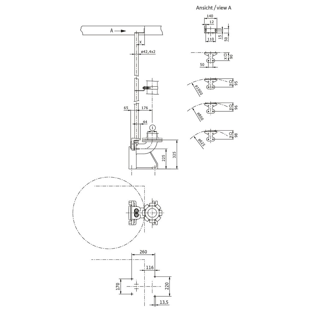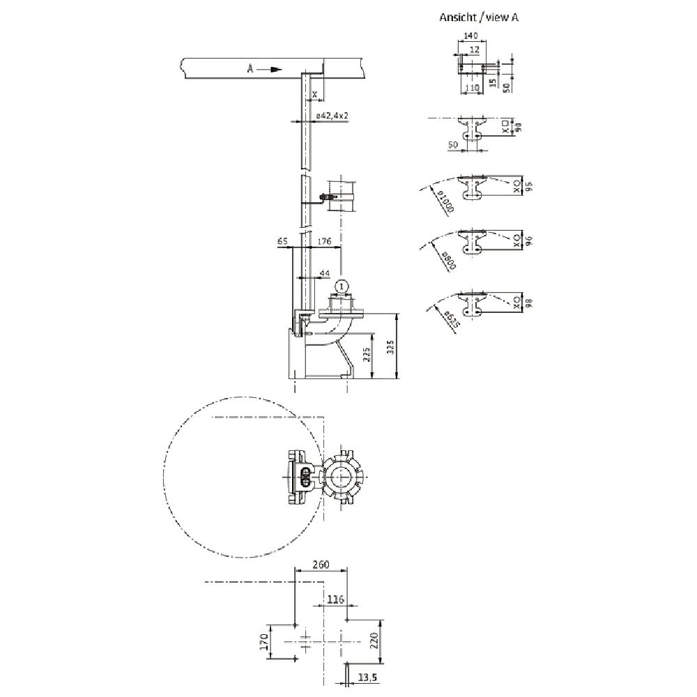 Dwie prowadnice (42,4x2 mm) zapewnia Użytkownik!