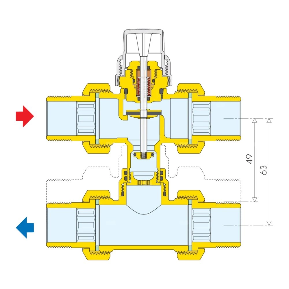 Trójdrożny zawór strefowy z obejściem współpracujący z siłownikami termoelektrycznymi serii 6563, 6561, 6562 i 6564 1/2"