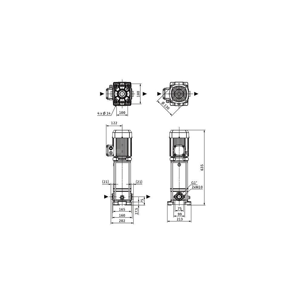 Pompa o kompaktowej konstrukcji z wałem przelotowym silnik-pompa i niezależnym od kierunku obrotów uszczelnieniem mechanicznym. Komory stopni, wirniki i kierownice przepływowe ze stali nierdzewnej. Płyta podstawy pompy z żeliwa z powłoką kataforetyczną z połączeniem kołnierzowym owalnym.