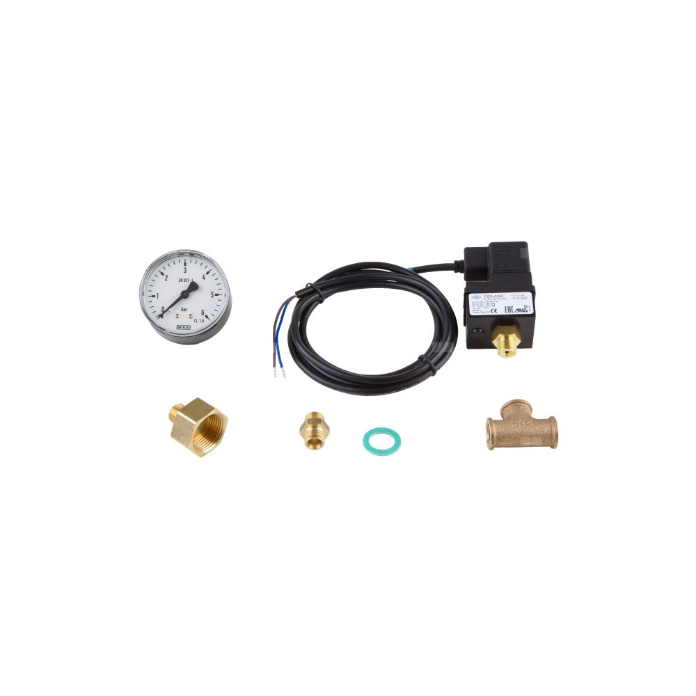 Przełącznik ciśnieniowy blokuje się przy ciśnieniu 1,0 bar, a zwalnia przy 1,3 bar (ustawienie fabryczne zgodnie z DIN 1988).